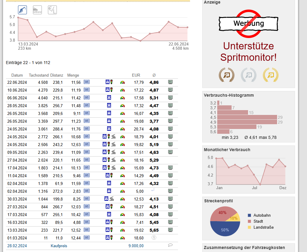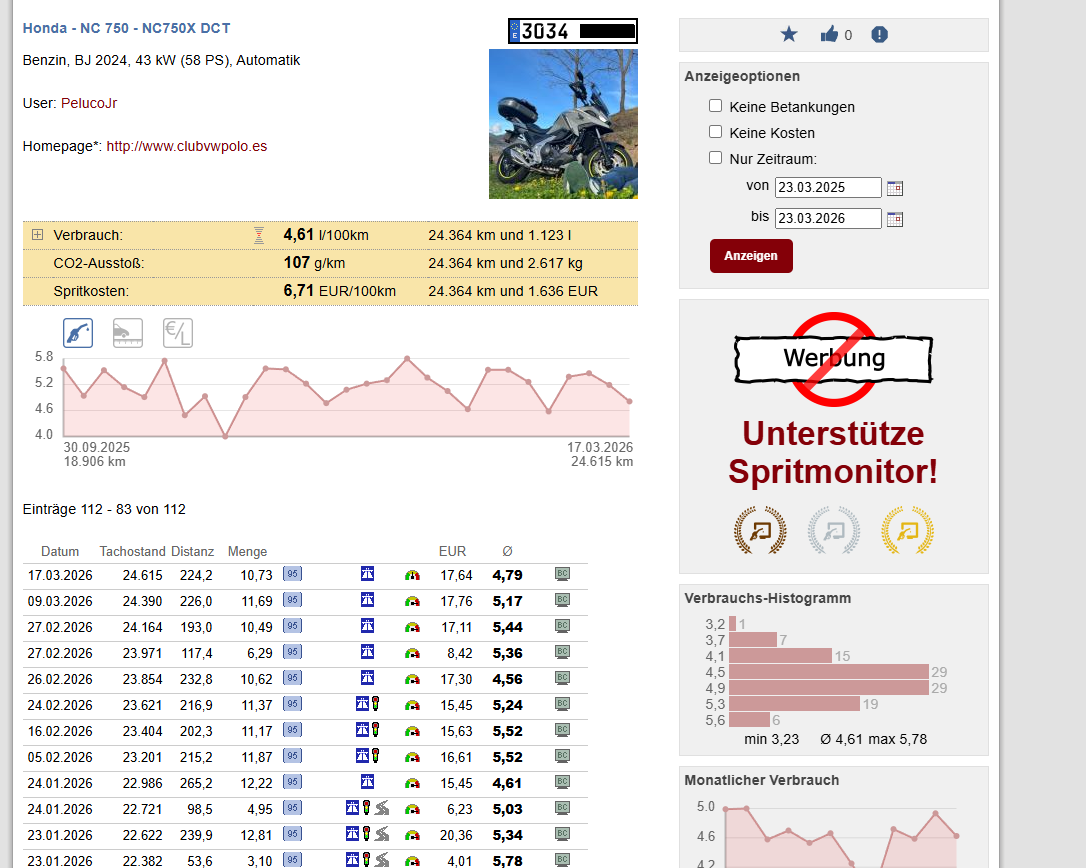Nein, es geht sich ja bei Spritmonitor nicht nur um den Verbrauch aber so hat man eine Geschichte zu seinem Motorrad, Dokumentation bei Inspektionen, TÜV, was man gekauft hat für sein Bike, einfach nur ein Überblick z.B. Reifen und ihre KM-Leistung etc..........