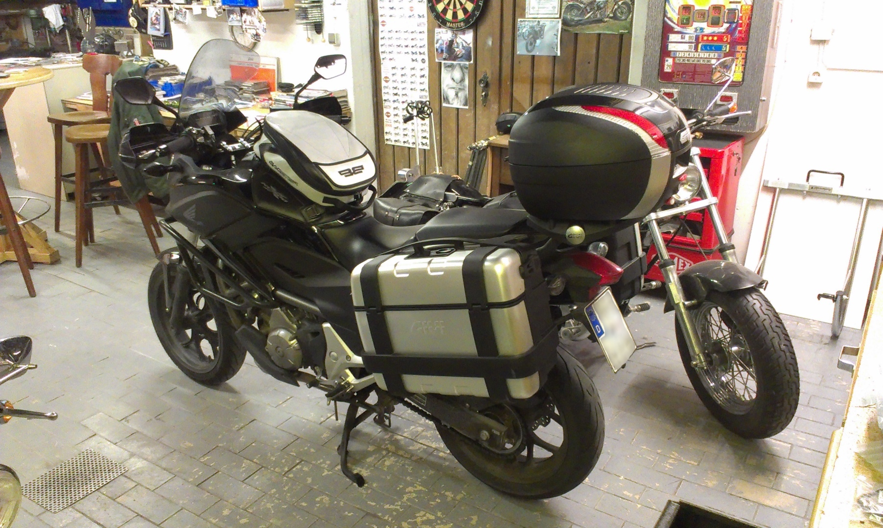 Topcase, "Kofferraum" und noch Tankrucksack sollten ausreichen.