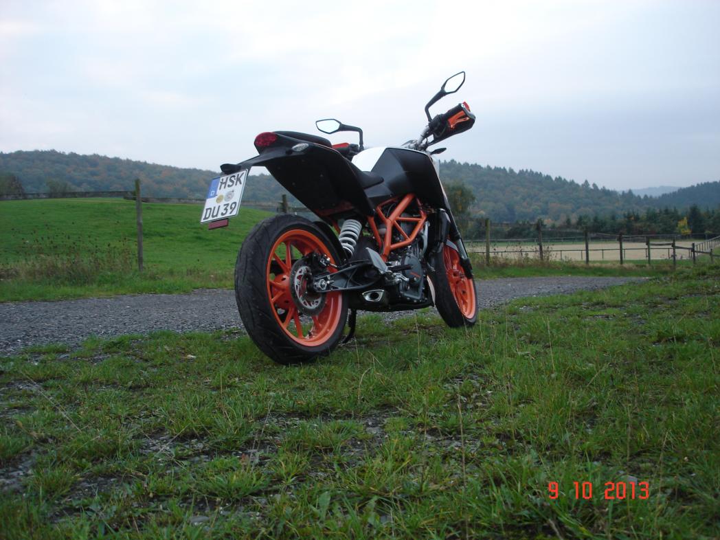 Die 390er ist ein echtes Suchtmittel - eine Woche bin ich nicht gefahren, heute musste ich, auch wenn die Strassen nahezu durchweg nass waren. Dabei machen die Sportec M5 übrigens eine sehr gute Figur. Bei trockener Straße sind die M5 sowieso eine echte Bank.