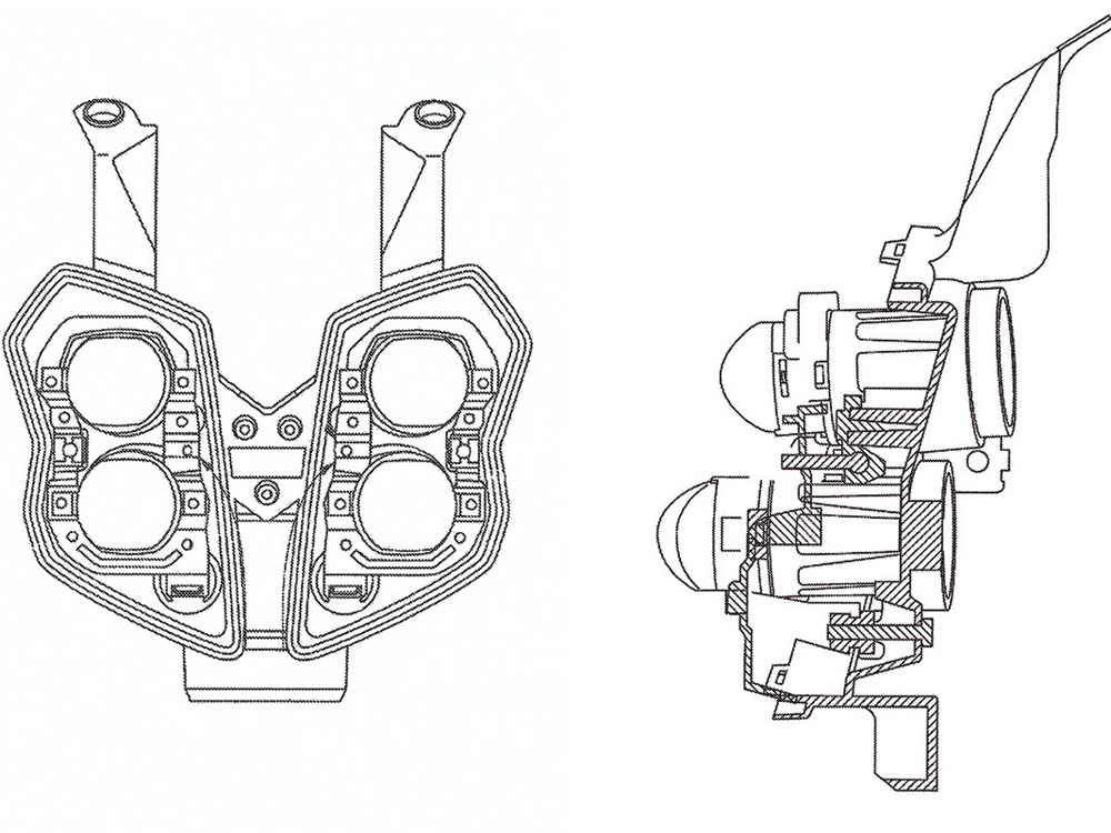 Patentzeichnungen zeigen eine neue Lampenmaske für die MT-07. Das Design ähnelt sehr stark der MT-10 (unteres Bild).