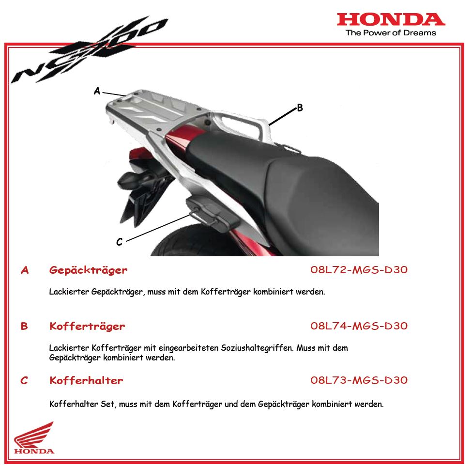 #5 Ich habe die original Gepäckbrücke von Honda an meiner X, allerdings bin ich bisher nur mit Gepäckrolle gefahren.