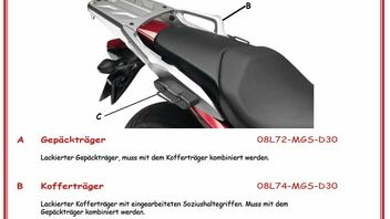 Allerdings kannst Du die alleine nicht montieren, da sie mit den Kofferträgern hinten kombiniert werden müssen.