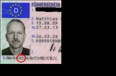 Daneben steht die A als "erteilte Fahrerlaubnisklasse"