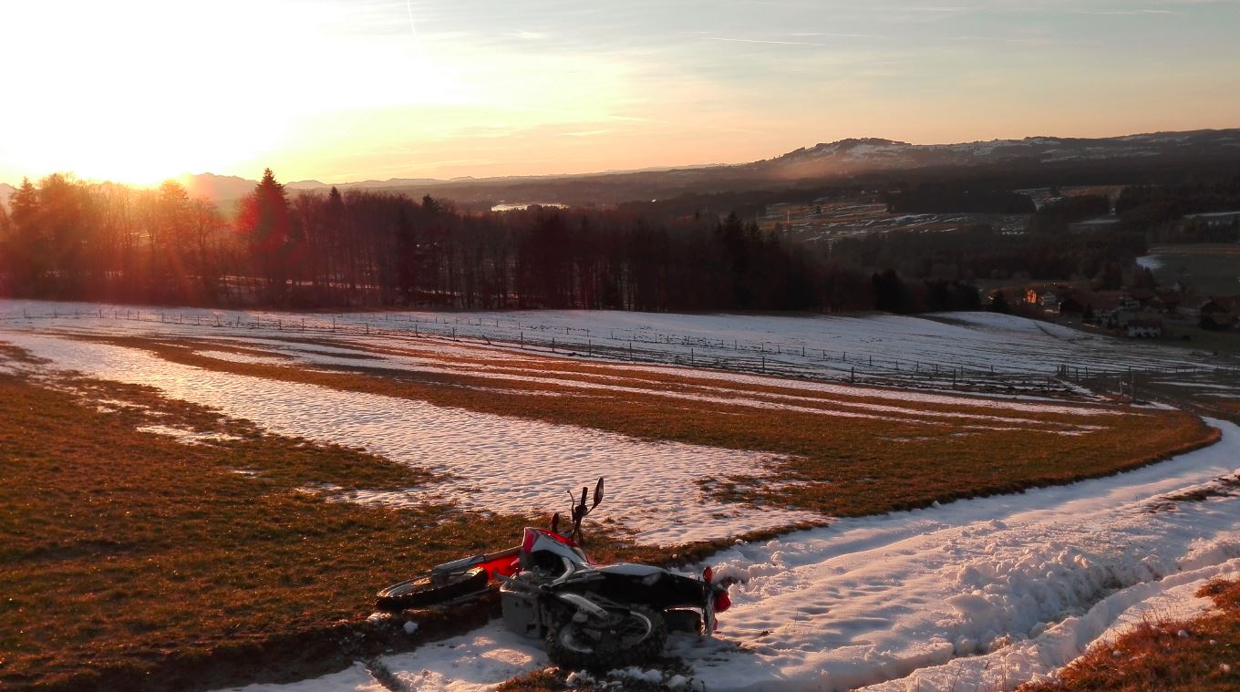 War mit der NC um kurz nach fünf noch trocken zur Arbeit gefahren, für den Rückweg grade habe ich aber den Wagen genutzt - auch, weil Handwerker gewartet hatten und der Fußmarsch zum Mopedparkplatz und dort Regenkombi an und daheim wieder aus zu lange gebraucht hätten.