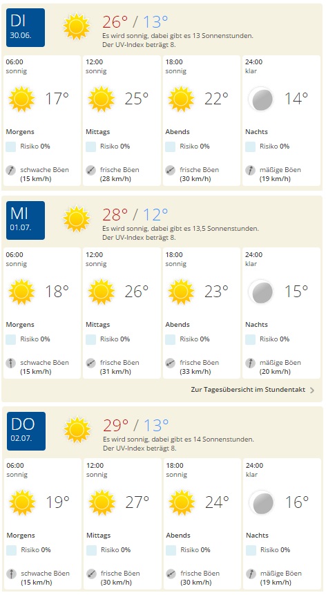 » weitere AussichtenVorhersage für Di, 30.06.15