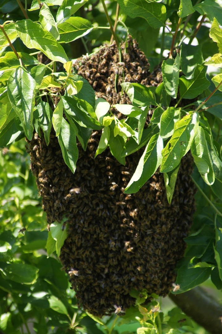 Trotz des schönen Wetters gab's heute erst am Abend eine kurze Tour. Während des Tages war arbeiten um's Haus angesagt.... Dabei hörten wir plötzlich ein sehr lautes summen. Wir sahen uns um und entdeckten einen Schwarm Bienen der über das Grundstück des Nachbars auf unser Haus zu hielt. Wir zogen es vor zuerst mal alle Türen und Fenster zu verschliessen und uns im Haus zu verschanzen... Bald stellten wir fest dass die Königin sich einen unserer Obstbäume als neues zu Hause ausgewählt hatte und sich somit der ganze Schwarm da niederliess.... So konnten wir unser "Versteck" schnell wieder verlassen. Wir informierten dann einen Imker der auch schon nach wenigen Minuten da war. Er fing den Schwarm kurzerhand mit einer Holzkiste ein und liess diese dann bis heute Abend beim Baum stehen damit die aufgeschreckten Kollegen durch ein kleines Loch den Weg zurück zu ihrem Schwarm finden konnten. Vor ein paar Minuten hat der Imker die Kiste abgeholt...