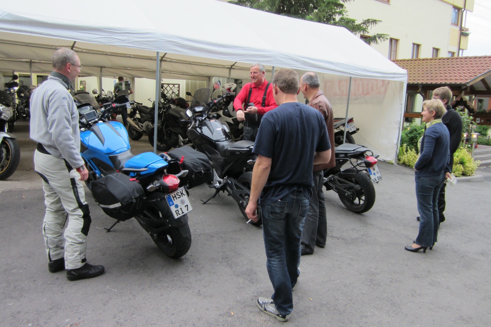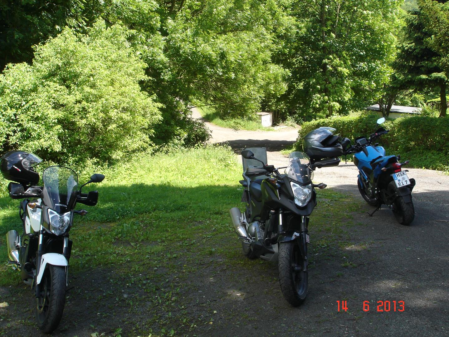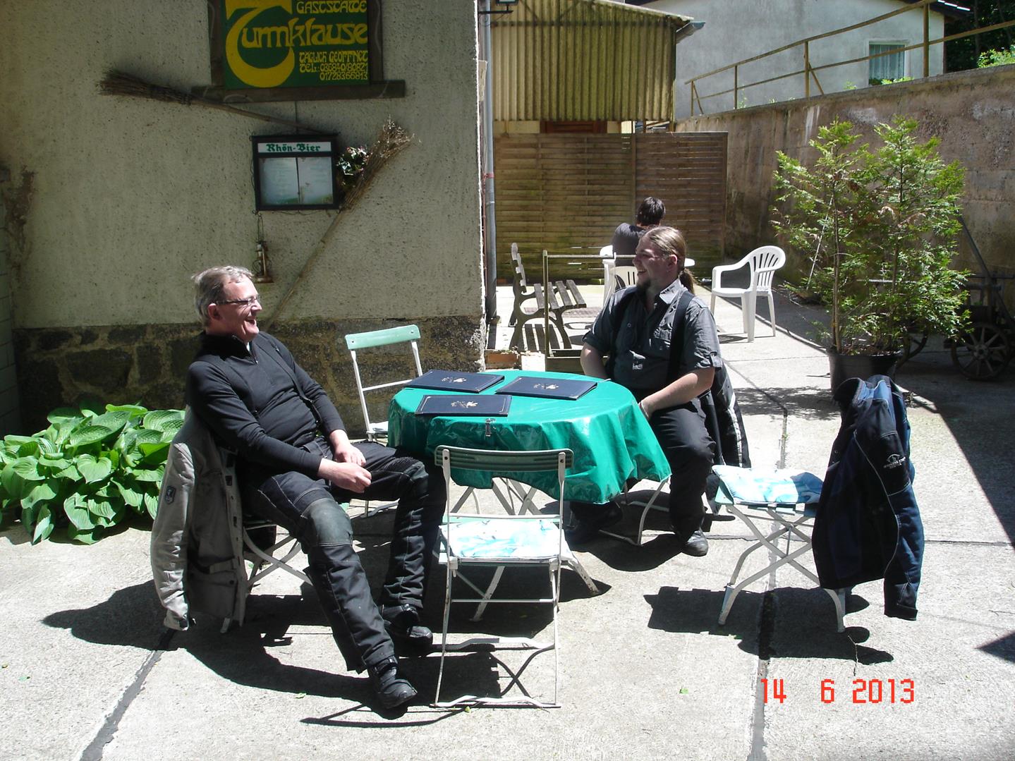 Als erstes der Tourguide Küsterbiker (Bindestrich) und sein Besenwagen Roland bei der mentalen Vorbereitung auf die Weiterfahrt.[attachment=2]WP_20130615_004.jpg[/attachment]