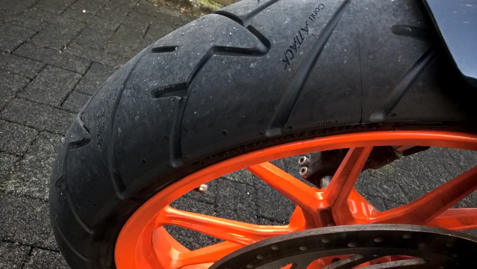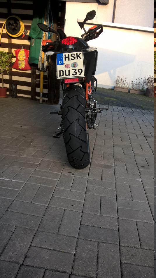 Gefahren bin ich natürlich auch schon und bin begeistert. Vom Grip der Contis sowieso, rollt die 390er trotz der Mehrbreite vorn überhaupt nicht kippelig ab. Ich habe sogar das Gefühl, dass sie jetzt einen kleinen Tacken unhandlicher läuft, allerdings waren die M7 RR auch schon recht spitz gefahren. Die Kontur ist schön rund und lässt sich sicher in voller Breite nutzen.