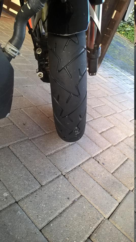 An den Reifen gefasst - Hammer, nach nur 9 KM bei 7 Grad Aussen-Temp. war der Reifen warm!