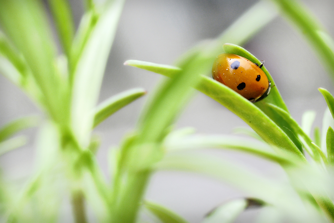 Ich hab' gerade vorgestern einen Marienkäfer in frisch ausgetriebenen Schmuckkörbchen-Jungpflanzen fotografiert!