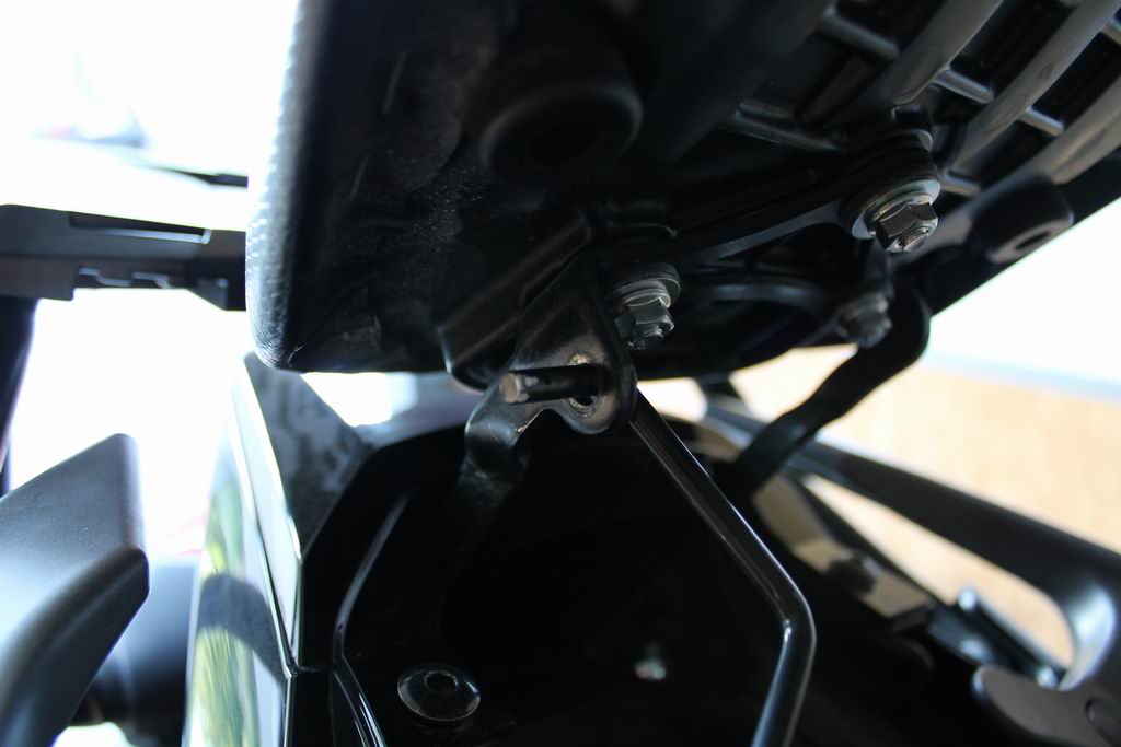 heute bei der Rundtour im Spessart war natürlich irgendwann der Tank leer. Also Benzinbunker angesteuert, Soziussitz entriegelt und beim Hochklappen ohne hinschauen plumpste mir der Sitz wieder auf die Finger statt einzurasten. Näher hingeschaut - hat sich doch tatsächlich der Splint am Gestänge oben am Sitz verabschiedet und alles was da oben dran war (U-Scheibe, Feder - weiß es ehrlich gesagt nicht mehr...) ist nun im dunklen Schlund der Hinterradverkleidung verschwunden und hat sich irgendwo in der Pampa verteilt.