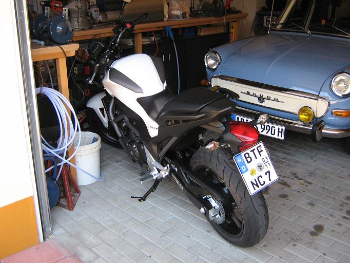 Heute war es endlich soweit: Ich habe meine neue "Freundin" beim HH abgeholt. Ungeachtet der Tatsache, dass ich auf Grund der unerträglichen Hitze quasi nur eine Überführungsfahrt zum Tanken und "Reifen anfahren" gemacht habe, bin ich für's Erste höchst erfreut, was die Fahreigenschaften anbetrifft. Mein Mountainbike gibt sich fast schon störrisch dagegen....