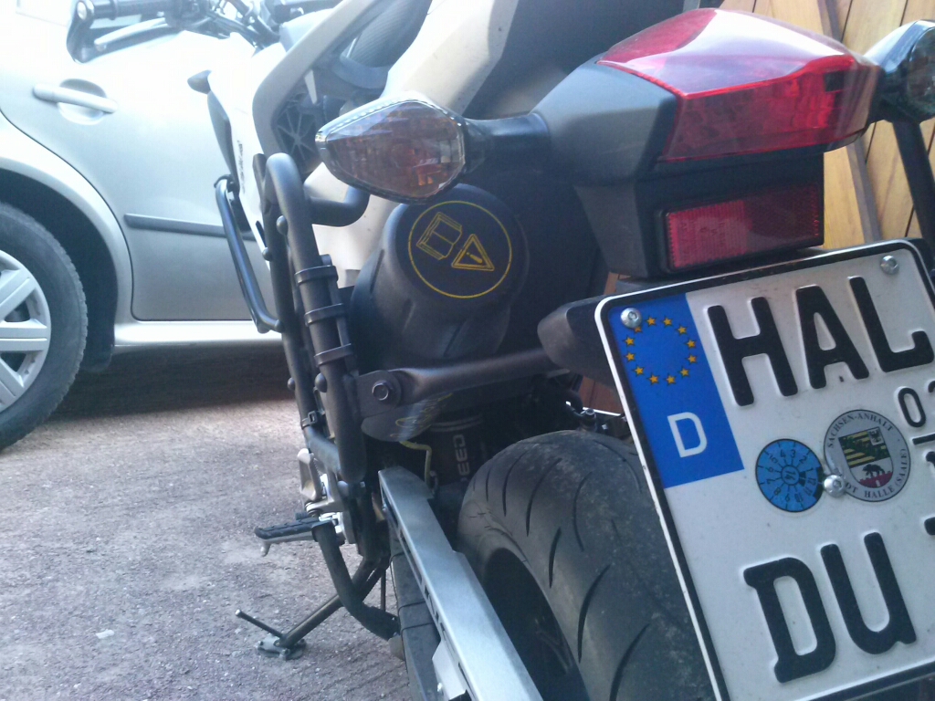 Weiter unten steht es zu Seite raus, es nimmt Bodenfreiheit weg, kann nicht schön befestigt werden... Bin wieder an dem Punkt es passt mir einfach nirgends hin ans "nackte" Bike. Wie gesagt, mit Seiten- oder Topcase-Träger hätte man noch ein paar Optionen mehr zum ausprobieren.