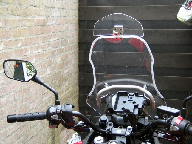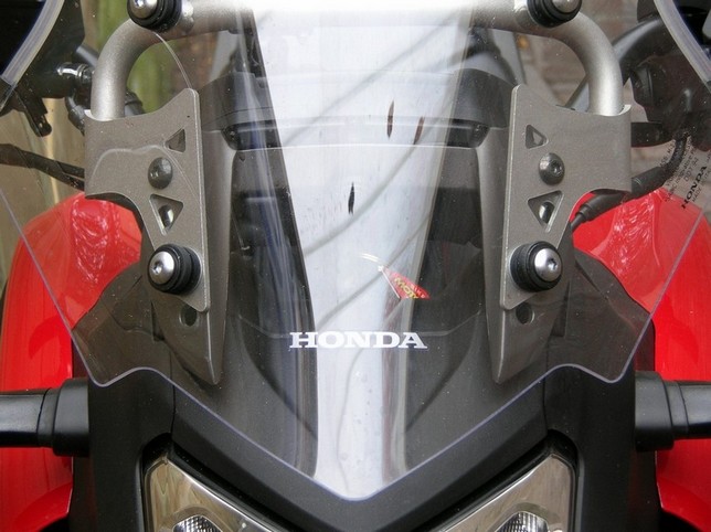 Das Honda Touring Windschild konnte nur in die unterste Position montiert werden. Die Gewindeplatten passten nur in die unterste Löcher. Irgendwo machten die Platten kontakt wenn versucht wurde die Platten in die oberste Löcher anzubringen.