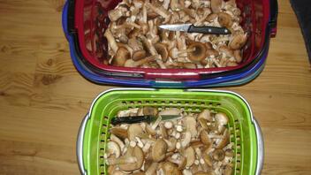 Wir pflücken nur Pilze, die wir kennen - heute haben wir nur Hallimasche gesammelt. Fast alle Pilzsammler lassen diese Pilze stehen, weil nur wenige sie kennen. Daher gibts meist "fette Beute"...