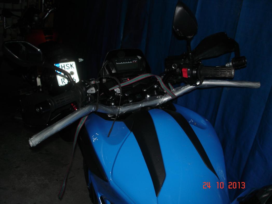 Ich denke, dass das passt. Im Foto wirkt der Lenker breiter, als er in natura ist. Ist etwa so breit wie der originale Lenker plus Gewichte, dafür aber etwa 1 - 2 cm tiefer. Sollte daher eigentlich passen.Torsten: Da kannst Du Recht haben, ich mags aber nicht noch einmal mit einem anderen Reifen ausprobieren...