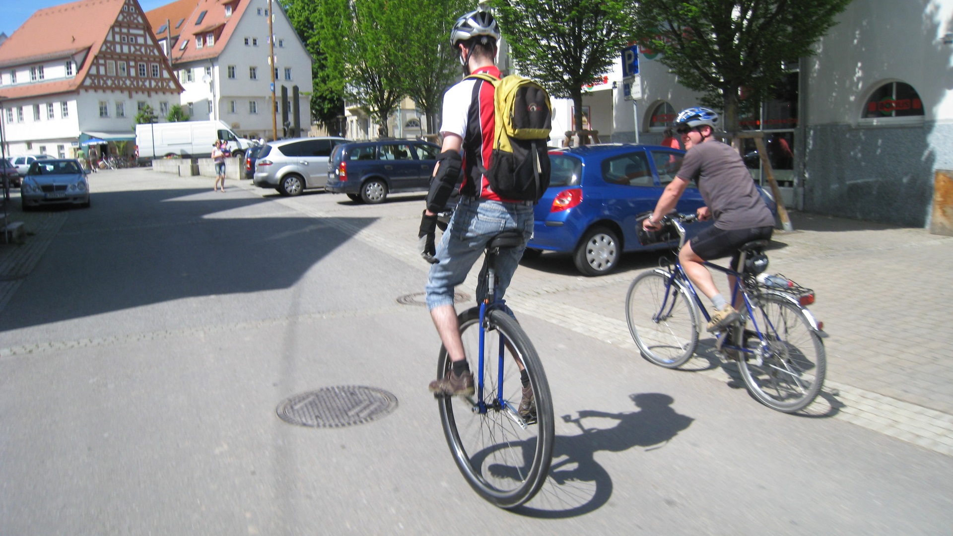 Leider habe ich es seit fast zwei Jahren nicht mehr wirklich aus Einrad geschafft - seit wir gebaut haben und ich Vater geworden bin fehlt mir schlicht die Zeit. Aber so oder so, es ist immer eine Riesen Gaudi und man kommt mit unglaublich vielen Leuten ins Gespräch. Dennoch muss man sich natürlich viel Spott anhören können.Aber was rede ich lang, so sieht das dann aus: