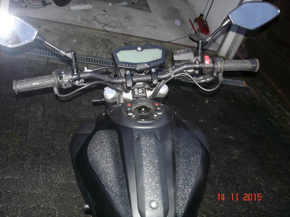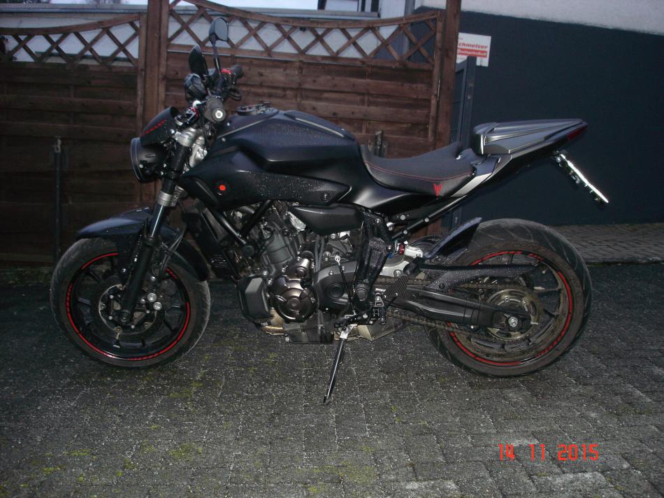 Klasse Farbkombination. Der etwas nach vorne verlegte Tacho ist auch ne gute Idee, kann man besser ablesen. Hier ein Foto der MT, mit der ich Probe gefahren bin. Man beachte die beiden unterschiedlichen Gelbtöne. Wahrscheinlich war das mit ein Grund, dass ich mich auf dem Teil nicht richtig wohl gefühlt habe... :D