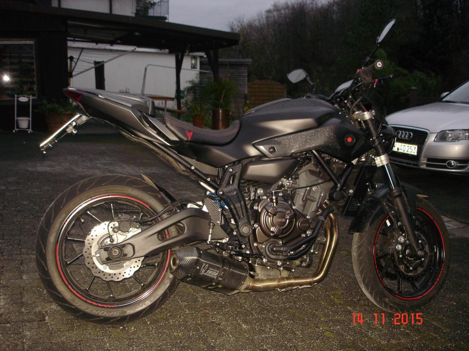 Klasse Farbkombination. Der etwas nach vorne verlegte Tacho ist auch ne gute Idee, kann man besser ablesen. Hier ein Foto der MT, mit der ich Probe gefahren bin. Man beachte die beiden unterschiedlichen Gelbtöne. Wahrscheinlich war das mit ein Grund, dass ich mich auf dem Teil nicht richtig wohl gefühlt habe... :D