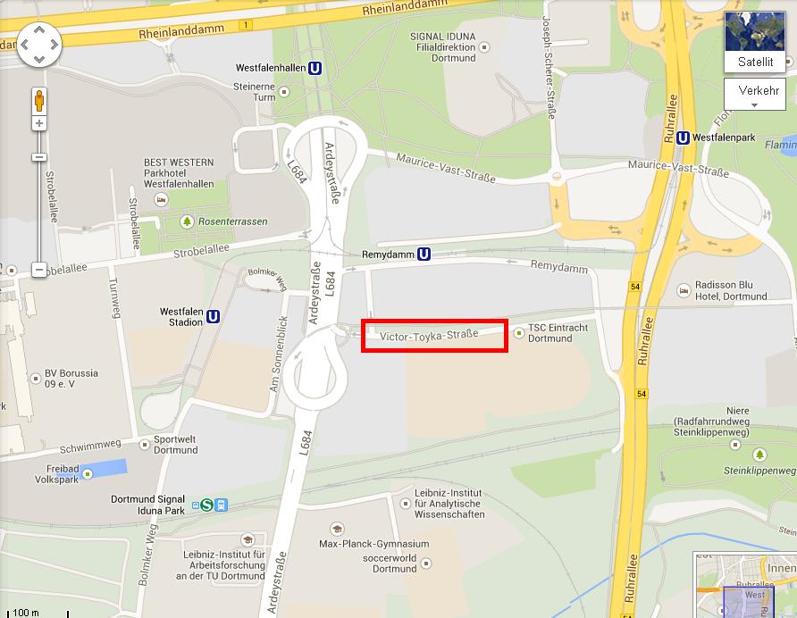 Wenn man von der B1 kommt (auf die B 54 Richtung Hagen), nicht die 1. Abfahrt Richtung Messegelände nehmen, sondern die 2. Abfahrt runter