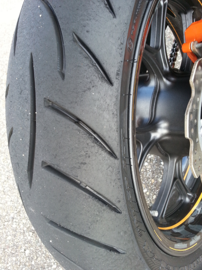 In Baden-Baden konnte man keine Reifen montieren lassen. Nur Luftdruck anpassen...Mit Metzeler hab ich aber gesprochen bzgl. Nässe und M/O...