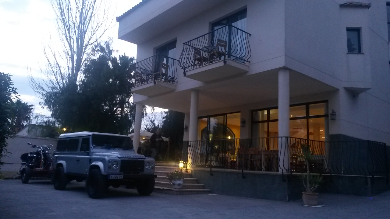 Der letzte Augenblick vor der Rückreise unser Hotel und die Reisekutsche