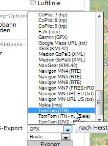 Anschliessend wählst du beim Export das für dein Navi passende Format aus, z.B. für den TomTom: