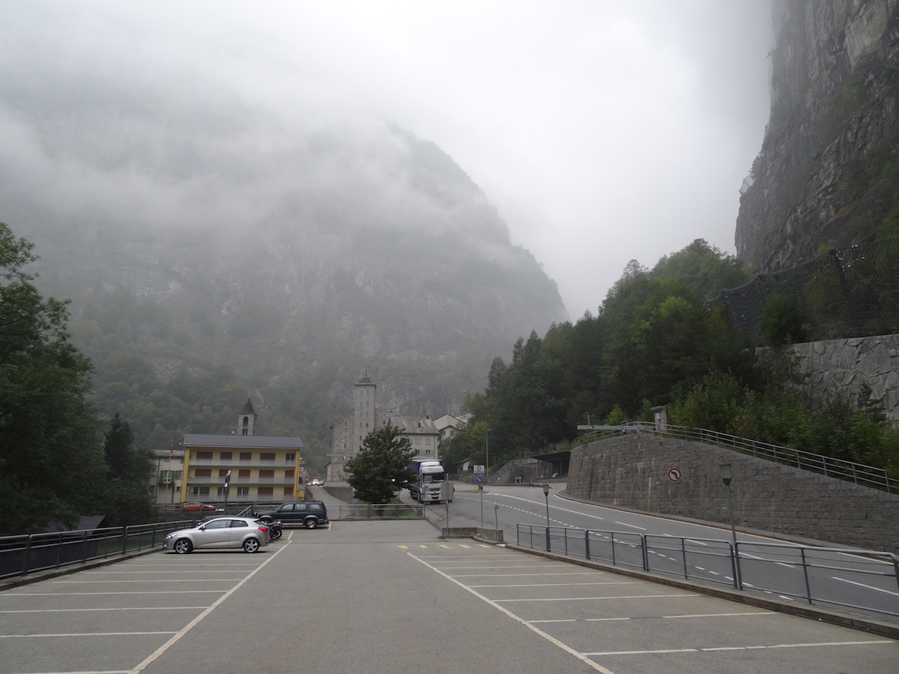 Oben ging es gleich weiter, allerdings nur mit 50kmh….. Grund war ein Lastwagen der einfach nicht schneller wollte… oder konnte….. Erst als der dann überholt war ging es wieder schneller vorwärts hinunter nach Gondo zur Grenze nach Italien. Nach einer kurzen Pause ging es weiter hinunter nach Domodossola und von da weiter über die Grenze in die Schweiz durch das Centovalli nach Locarno.