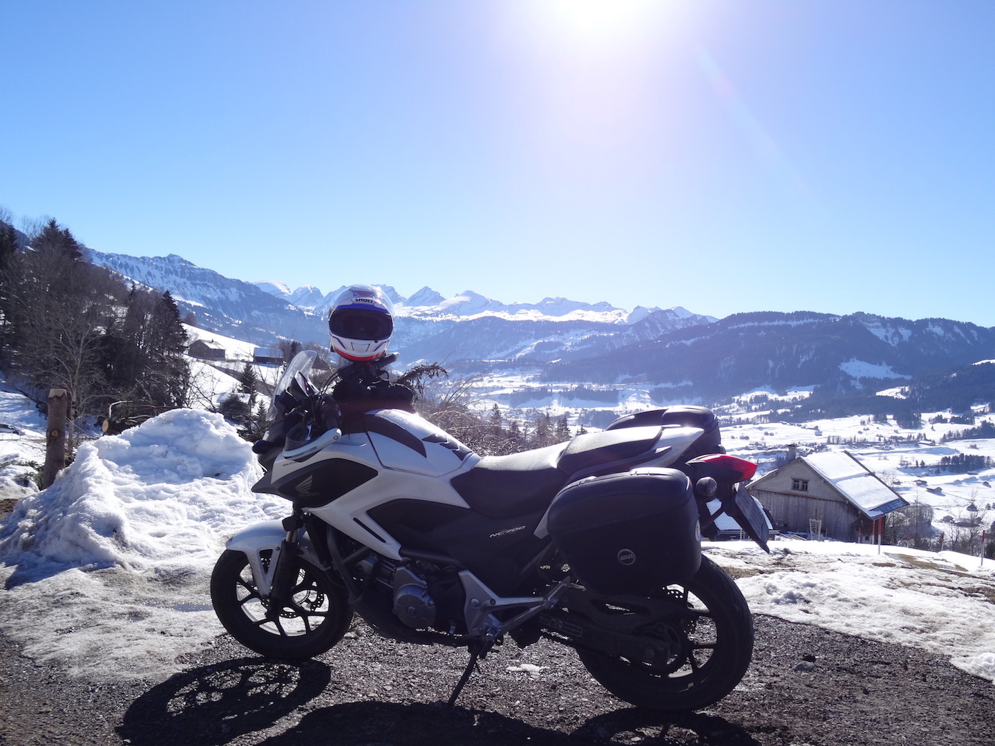 Als ich am Morgen um 10:00 losfuhr war es an der Sonne schon recht angenehm. Meine Orca steht aber an einem Ort der zu dieser Jahreszeit um diese Zeit noch keine Sonne abgekriegt. Dort war es noch – 2 Grad. Trotzdem fuhr ich los. Die Tour führte mich vom Thurgau ins Appenzell, Toggenburg, über den Ricken ins Tösstal und wieder zurück in den Thurgau. Ich hatte die Tour nicht speziell geplant. Ich fuhr einfach los und liess mich treiben wie ich es gerne mal mache. War einfach toll!! Ein paar Fotostops, einmal tanken und mal was Essen – ansonsten war nur fahren angesagt! Als ich um 17:00 nach Hause kam waren 340 Kilometer mehr auf dem Tacho.