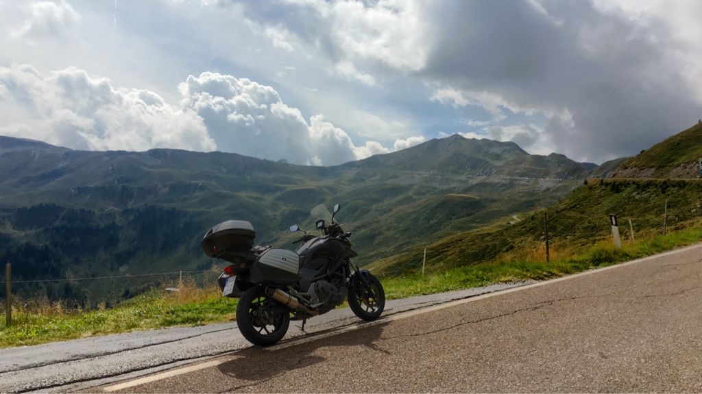 Die Rund 700km führten mich u. a. über die alte Brennerstrasse nach Italien hinein, weiter über das wunderschöne 2211m hohe Penserjoch. Zum Mittag bin ich dann auf den Mendelpass hoch. Die Speckknödel auf über 1300m waren ausgesprochen lecker.