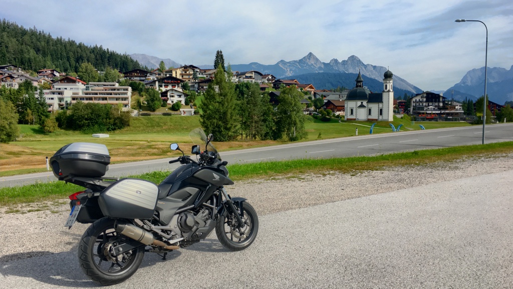 Etappe 1 führte vom Niederrhein nach Seefeld in Tirol. Zu 80% der rund 800Km fuhr ich Landstraßen durch diverse Mittelgebirge Deutschlands, 20% Autobahn.