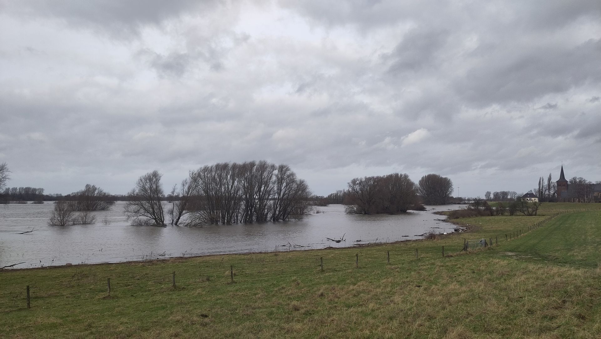 #3.020 Heute bin ich nochmal nach Bislich an den Niederrhein gefahren. Der Pegel ist seit Ende November ordentlich gestiegen. Die Bilder sind an der Stelle geschossen wo die Straße über den Deich führt.