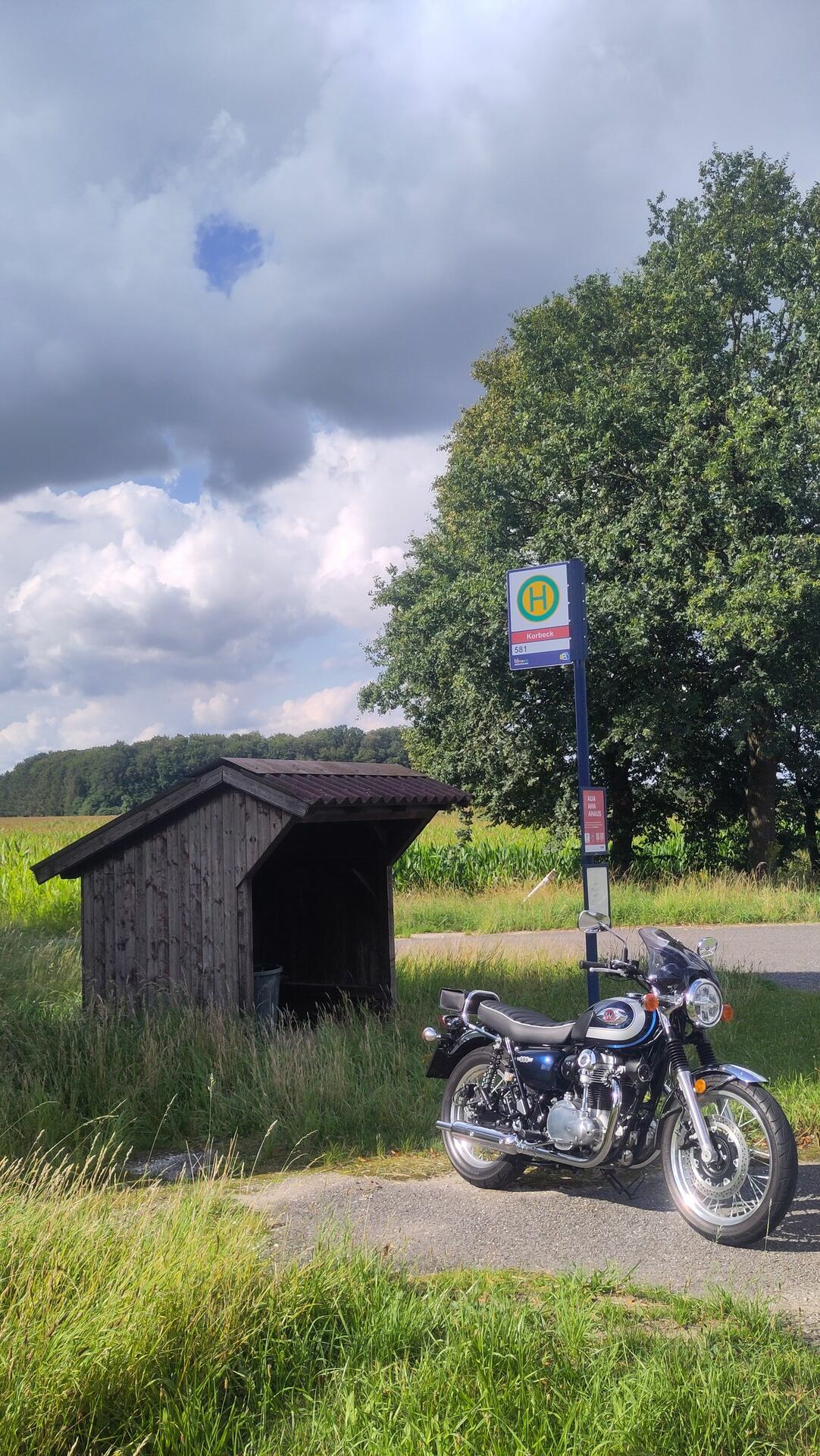 Heute war ich bei angenehmem Wetter im Münsterland unterwegs mit meinem Zweit-Motorrad, der W800. Endlich habe ich mal angehalten um einen ehemaligen Trafoturm bei Rosendahl zu fotografieren. Da ist was schönes draus geworden.