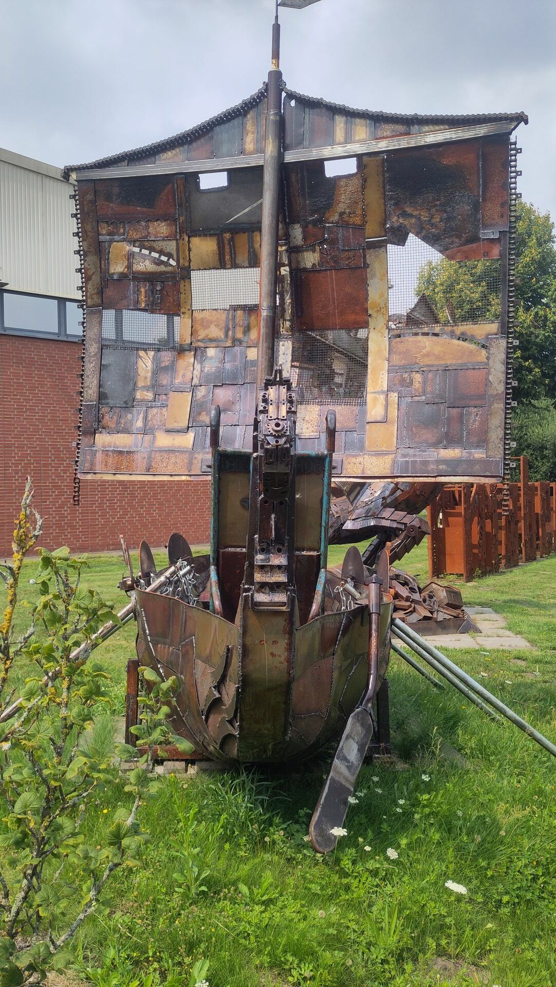 In Natrup-Hagen, das liegt am Teutoburger Wald, habe ich in einem Gewerbegebiet schöne Stahl-Skulpturen vor einem Maschinenbau-Betrieb gesehen. Die haben sich da wirklich was schönes ausgedacht und realisiert. Und dafür, dass ich die Bilder mit dem Smartphone gegen die Sonne aufgenommen habe, sind die recht gut geworden.