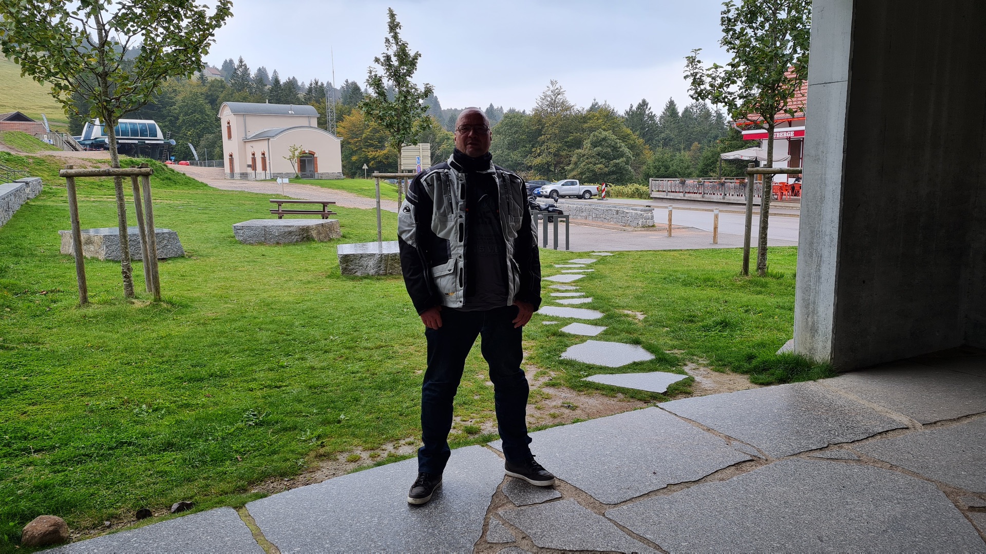 Oben dann echt mieses Wetter. Untergestellt haben wir dann jeder eine mitgebrachte Paul++++ Spezi geschlürft.