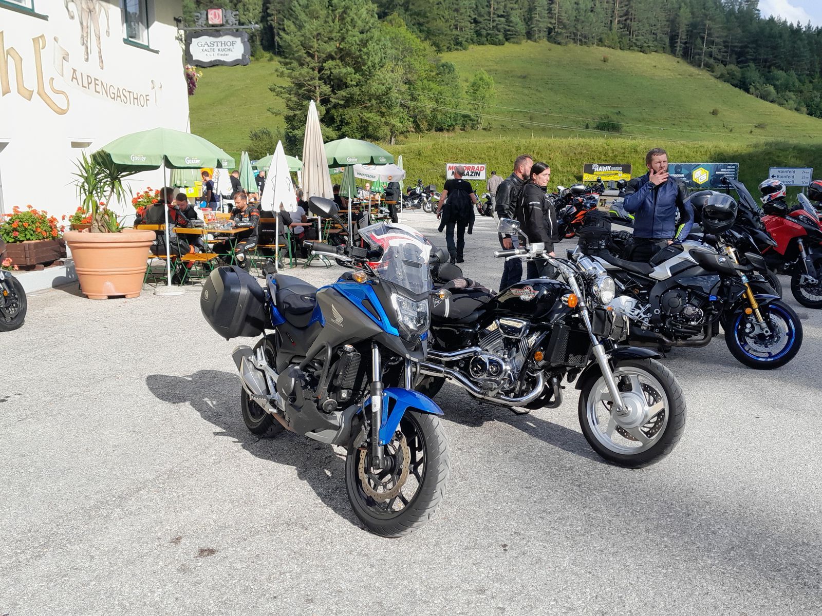 Tag 4 : Reschenstrasse weiter bis Landeck, Arlbergpass, Lechtalstrasse, Mellau/Bezau, Scheidegg als Abschluss und dann zurück zum Bodensee. Gemütlich durch St. Anton hat auch was, nette Biker getroffen
