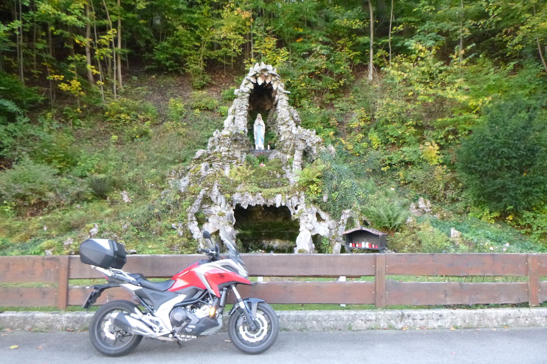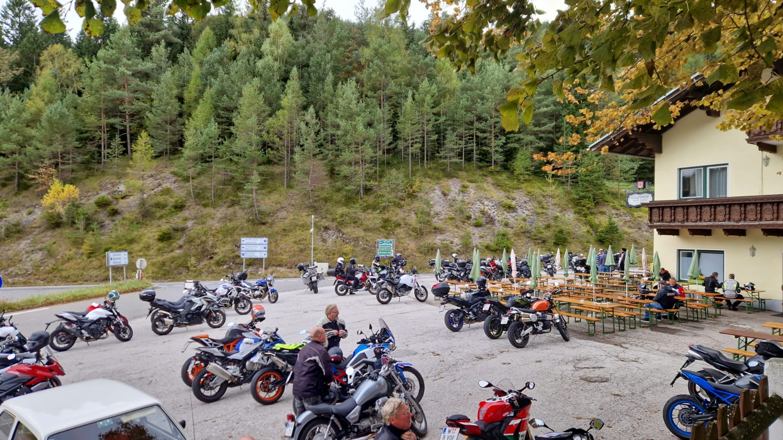 #3.638 Gestern im Wallfahrtsort Mariazell gewesen und einen Magenbitter mitgenommen. Leider hat das Wetter nicht ganz mitgespielt. Die Route war in etwa so. Leider kann ich sie auf Google nicht genau zeigen weil er mich den unbefestigten Abschnitt nicht einfügen lässt. Nur wenn man auf Fahhrad oder zu Fuß wechselt. Auf der Rückfahrt dann noch im Motorrad Mekka Kalte Kuchl stehen geblieben.