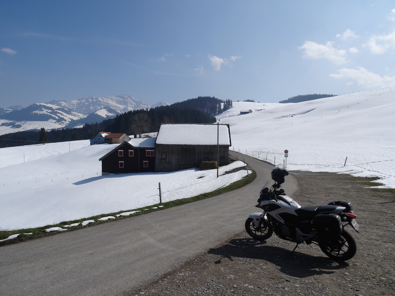 Es ging um 10:30 los, war noch etwas kühl zum fahren, aber jedenfalls schon mal viel angenehmer als die letzten Tage.... Die Tour führte mich kreuz und quer durch die Nordostschweiz - betroffen waren die Kantone Thurgau (geht ja nicht anders da ich da wohne... :lol: ), St. Gallen und die beiden Appenzell. Mit der Zeit wurde es immer etwas wärmer. Da ich aber auch etwas an Höhe gewann war es da dann wieder kälter... :think: Die höchsten Stellen waren die Schwägalp (1300m) und St. Anton (1110m), aber nicht das am Arlberg - obwohl gar nicht so weit entfernt....
