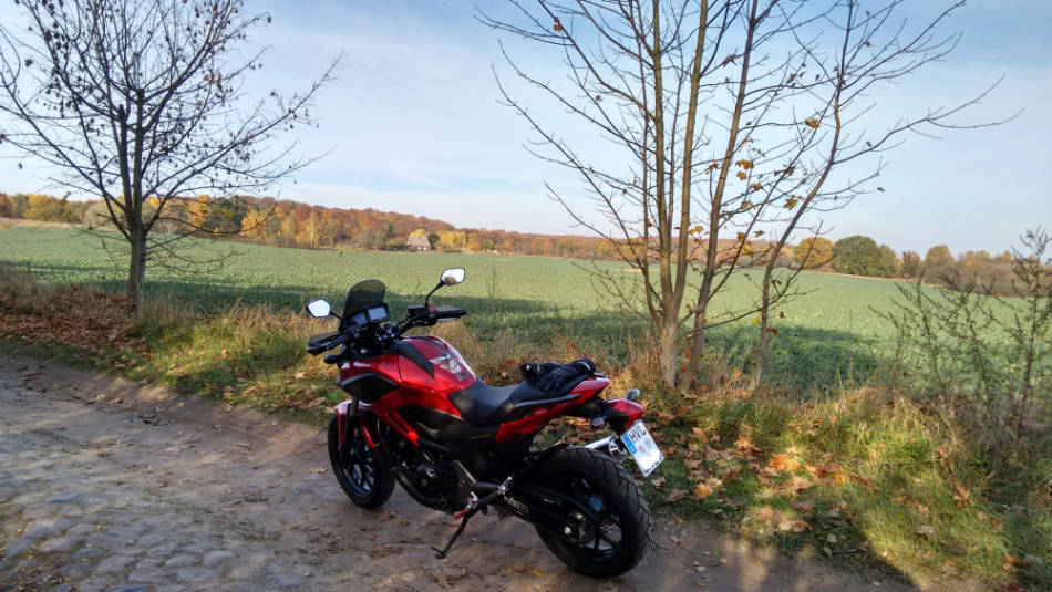 Heute bei netten 17° ne entspannte 200Km-Runde durch's Berliner Umland gedreht. Die Straßen waren meist feucht und hier und da lagen ein paar Blätter rum, aber keinen Regentropfen abbekommen. :dance: