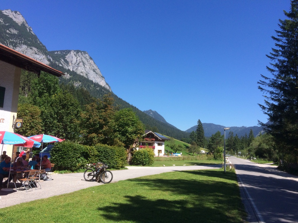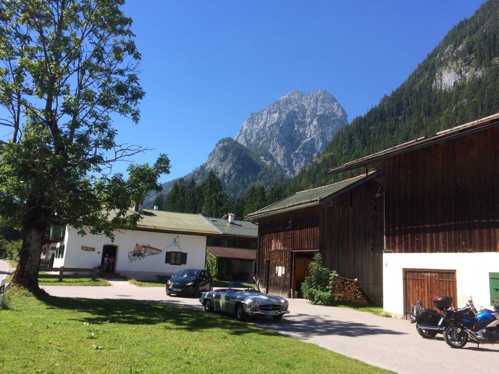 Stop! Kurzfristig haben wir drei uns entschlossen doch noch ein paar Meter traumhafte Bergstrecke mitzunehmen. Abgefahren über die steile Strecke vom Obersalzberg, durch den Markt Berchtegaden ging es nach Bischofswiesen und dort am Ortsende recht direkt über das Hochschwarzeck zurück auf die deutsche Alpenstasse nach Bad Reichenhall und wieder nach Hause..