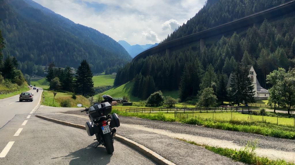 Die Rund 700km führten mich u. a. über die alte Brennerstrasse nach Italien hinein, weiter über das wunderschöne 2211m hohe Penserjoch. Zum Mittag bin ich dann auf den Mendelpass hoch. Die Speckknödel auf über 1300m waren ausgesprochen lecker.
