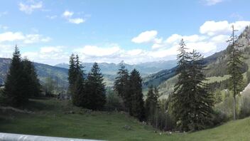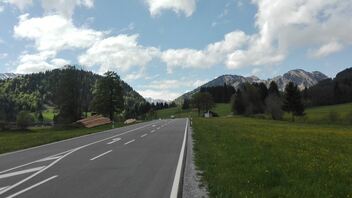 Auf lauter kleinen Stäßchen und durch Weiler versucht, irgendwie drumherum zu kommen. Endete aber auch nur an einer Kuhweide. Also mal wieder Wenden am Berg auf Schotter...