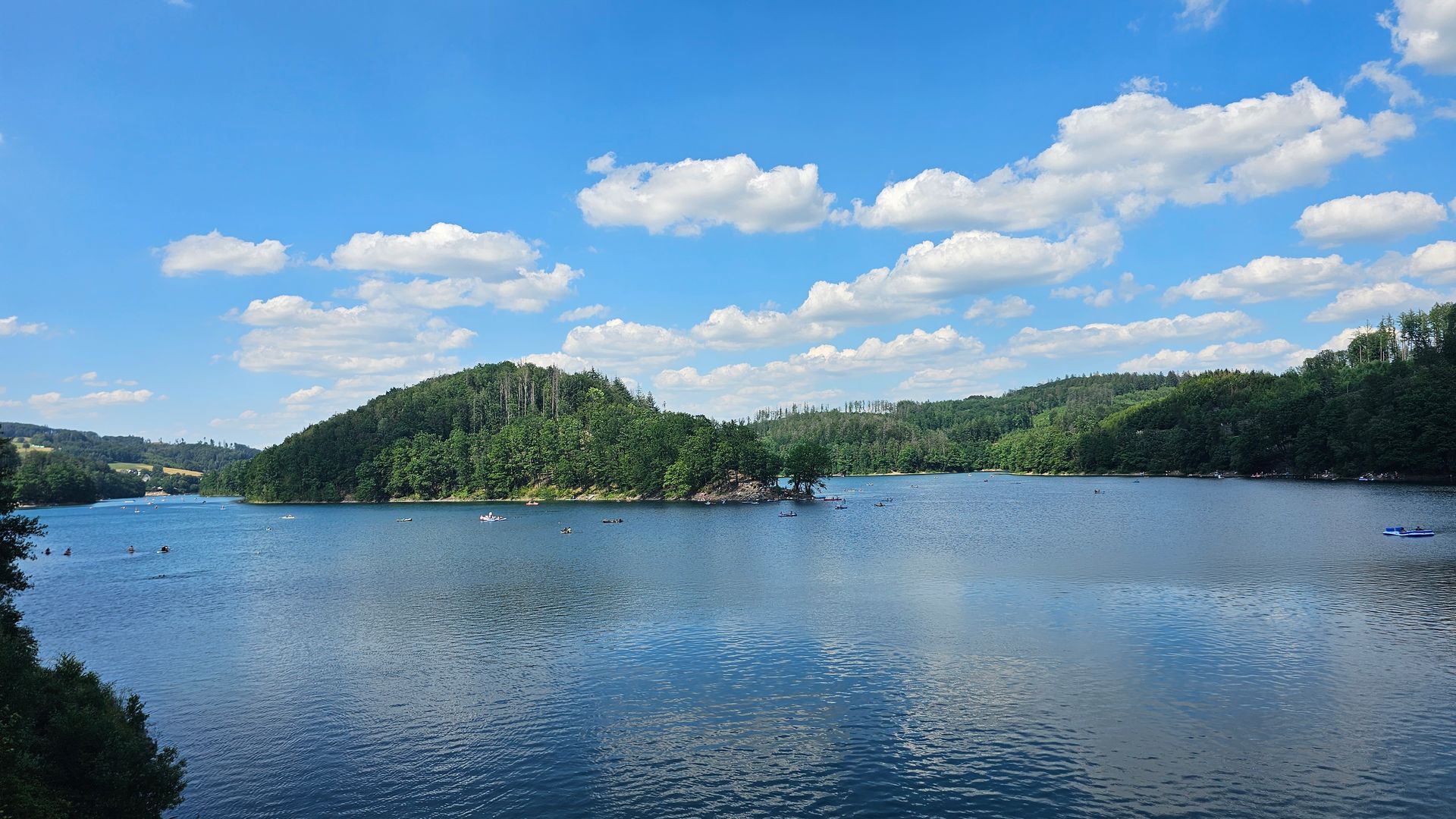 Dann zur Wiehltalsperre, in der sich die "Krombacher Insel" aus der Werbung befindet, zum Fotostop.
