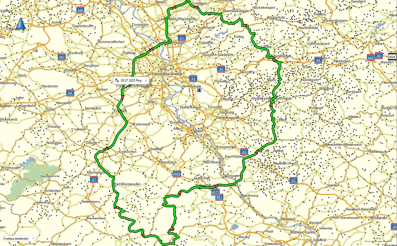 Bei deiner Tour hättest du bei mir zu Hause vorbeikommen können. Dort wo du umhergefahren bist, das ist quasi mein Hausstreckengebiet. Heute hätte ich die Fahrt direkt vorbei am Nürburgring allerdings gemieden, denn dort war eine Veranstaltung und dann ist da immer die Hölle los.