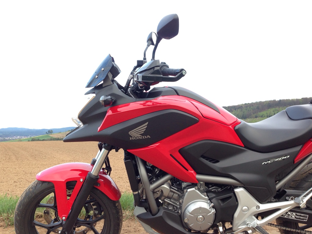 So, jetzt also die MRA Sportscheibe der NC700S gekauft. Mir war klar, dass die Löcher nicht passen und ich neue bohren muss. Heute kam die Scheibe, ich habe neue Löcher gebohrt und die Scheibe angeschraubt.