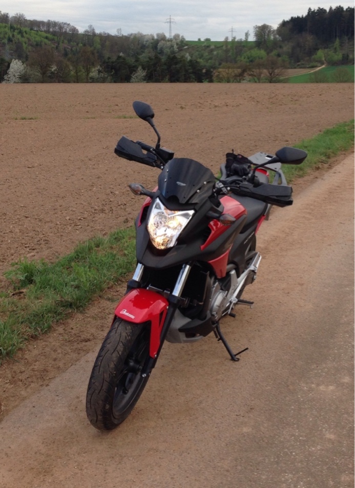 Nachdem mich an meiner X von Anfang an die Scheibe gestört hat, die in jeder Stellung enorme Wirbel ("donnern") an meinem Helm verursacht hat, hab ich lange getestet was ich machen kann. Eine Tourenscheibe kommt für mich nicht in Frage, ich möchte beim Mororradfahren nicht ständig durch 2 Scheiben (Tourenscheibe und Visier) gucken. Und Winddruck auf den Körper stört mich nicht. Zum Test also mal ohne Scheibe gefahren, es war viel besser! Nur ohne Scheibe sieht das Motorrad Sch... aus!