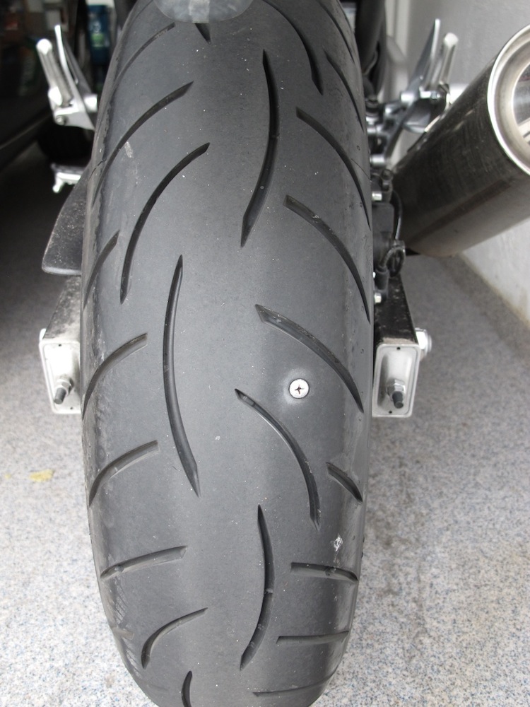 heute morgen habe ich die Garage aufgemacht, um mit der X in die Arbeit zu fahren. Mein Blick fällt auf den Hinterreifen.