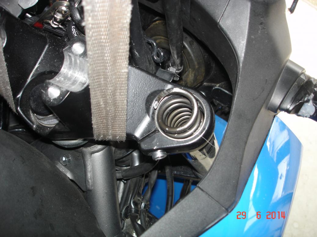 Didi hat die obere Distanzhülse gegen ein gleichlanges Stück der Originalfeder getauscht, und zwar das weichere Ende.