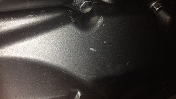 Bei meinem vergeblichen Versuch einen Sturzbügel anzubauen, habe ich mit der Ratsche die Pulverbeschichtung auf der Getriebeabdeckung? beschädigt. Nicht nur ist dort die Farbe ab, sondern auch ein recht tiefer Kratzer. Weitere kleine Lackschäden ohne tiefe Kratzer sind auch auf weiteren Stellen am Teil vorhanden. Lange hat mich das nicht gestört, aber langsam achte ich jedes Mal wenn ich bei dem Motorrad bin darauf, und möchte die Schäden jetzt reparieren.