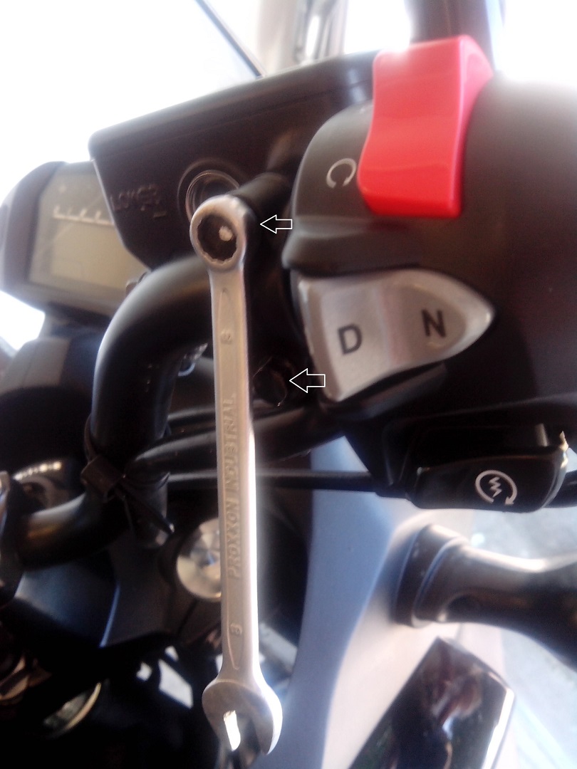 Bild 1 / Ihr lößt die 2 Schrauben von dem Bremspumpen Halter am Lenker und schiebt diesen 2cm zur Seite.